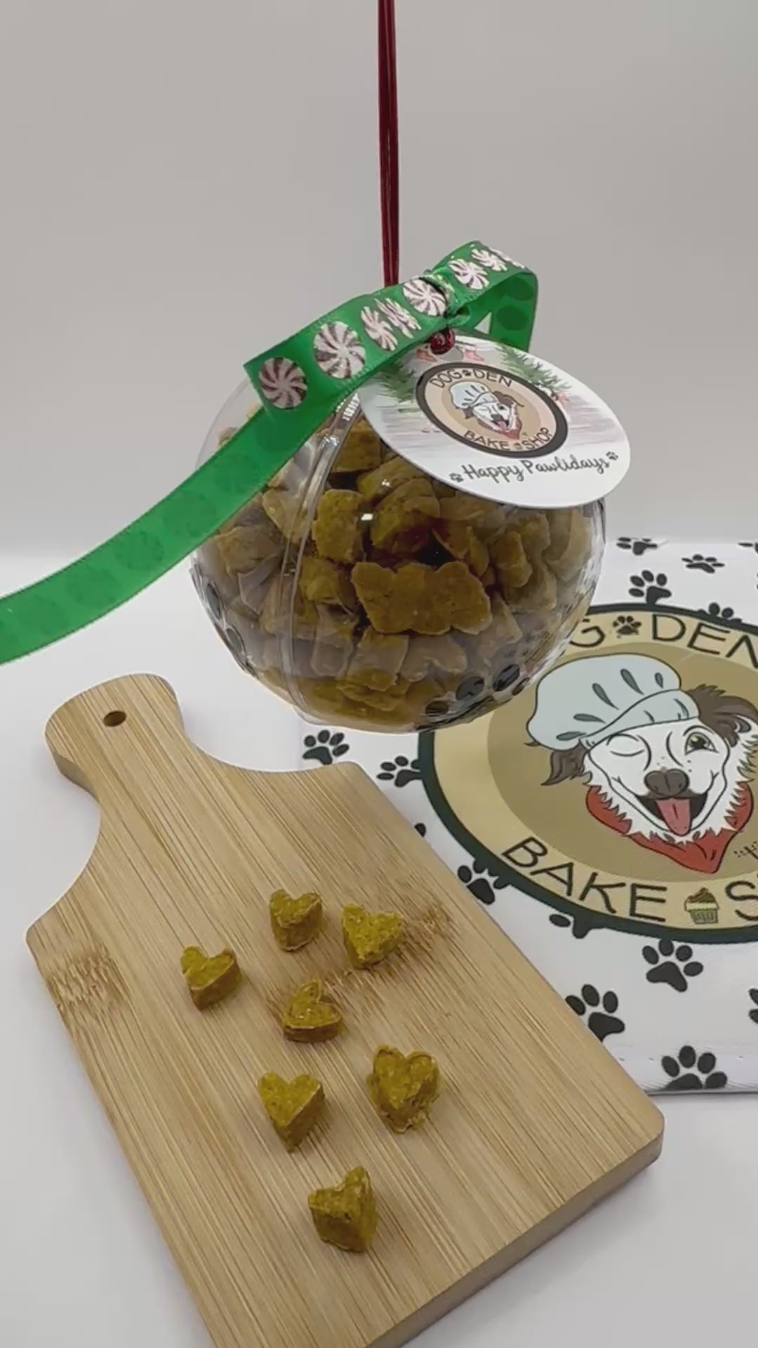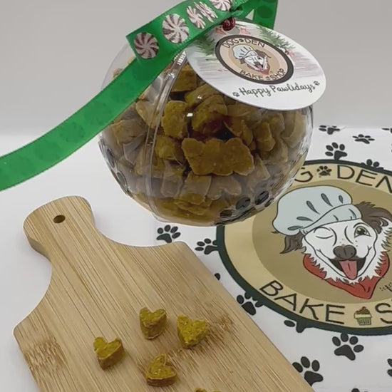 Spoil your furry friend this holiday season! 🎄🐾 Our Christmas Treat Ornament is filled with 4oz of extra mini heart-shaped treats, perfect for your pup's special day. Or give as the perfect gift for another pet parent!