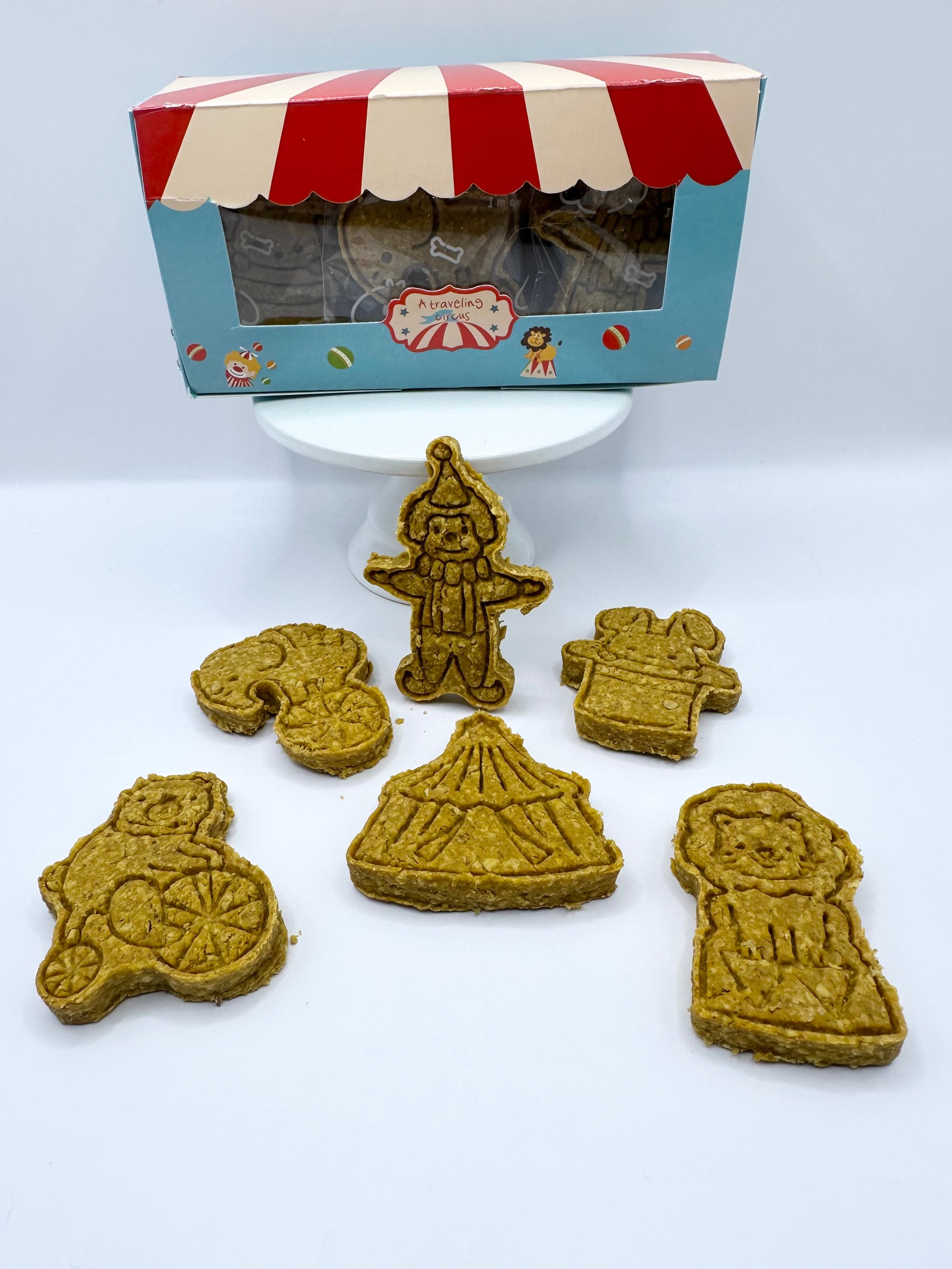 Each box contains 6 different circus-themed treats, with 2 of each treat, totaling 12 delicious goodies!