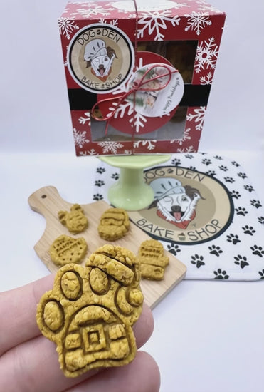 Our Mini Christmas Treat Gift Box is filled with adorable holiday-themed treats for your furry friend! Perfect as a stocking stuffer, gift, or special treat for your pup.