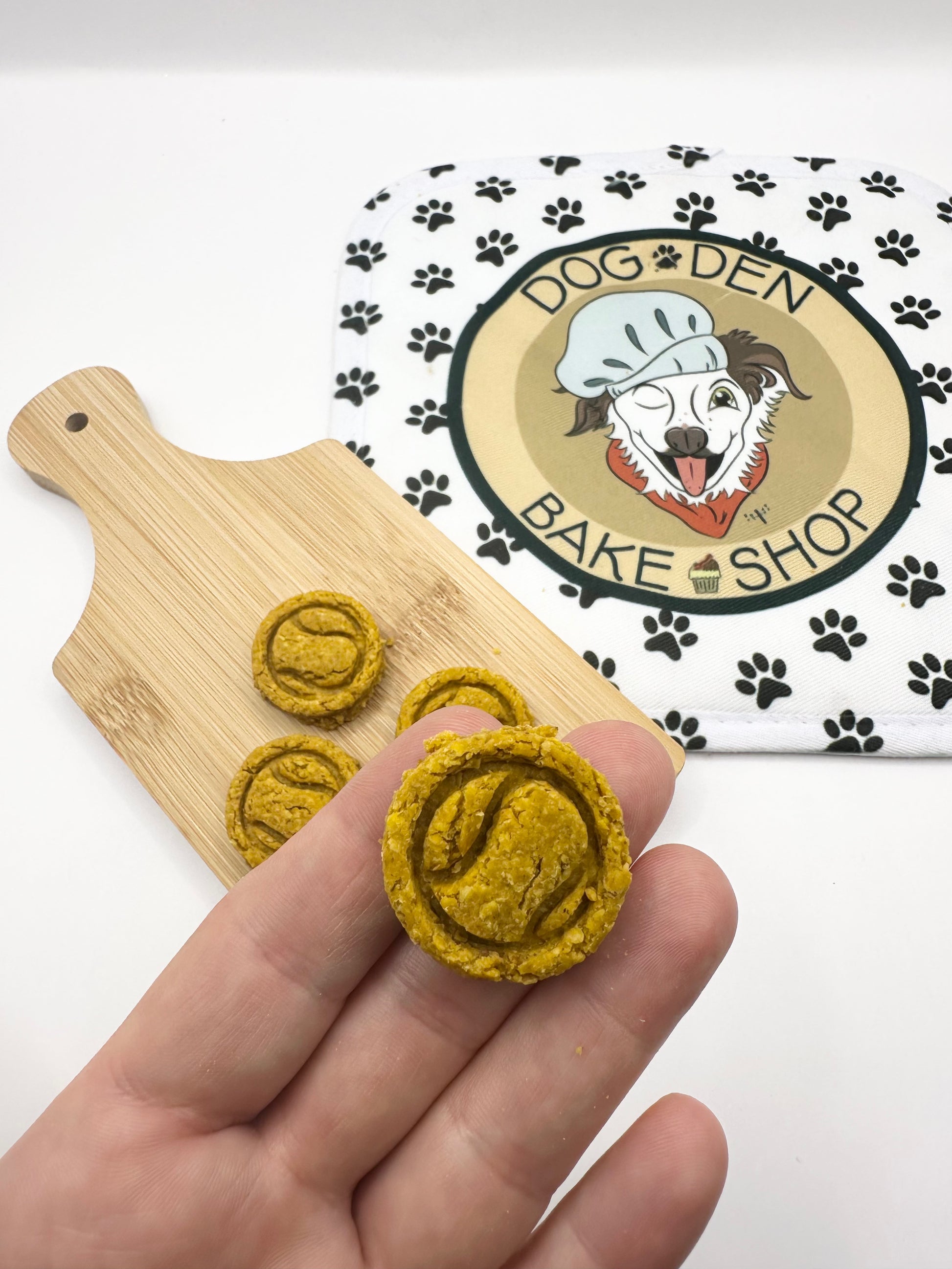 Serve up some fun with our Mini Tennis Ball dog treats! ๐พ๐พ These adorable tennis ball-shaped cookies are purr-fect for ball-obsessed pups who live for their favorite toy. Treat your furry friend to a tasty and fun snack that's sure to make them wag their tail!